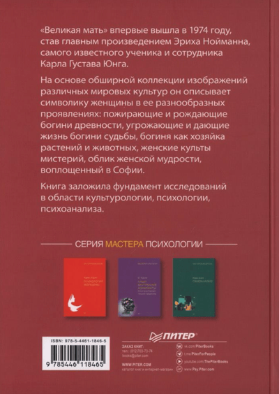 "The Great Mother" was first published in 1974, becoming the main work of Erich Neumann, the most famous student and collaborator of Carl Gustav Jung. Based on an extensive collection of images from various world cultures, he describes the symbolism of women in their various manifestations: devouring and giving birth goddesses of antiquity, threatening and giving life goddesses of fate, the goddess as the mistress of plants and animals, female mystery cults, the image of female wisdom embodied in Sophia. The book laid the foundation for research in the field of cultural studies, psychology, psychoanalysis.