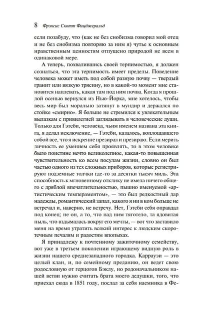 World classics, prose of the highest level, created by a master with impeccable taste and a unique literary gift. "The Great Gatsby" is one of the most famous and popular works of American literature, which is invariably included in the lists of the greatest books of the 20th century. The novel tells about the "Jazz Age", a brilliant era of music and entertainment. An exquisite and surprisingly lively story of fatal love, which the heroes carried through the years. The story of the "path to the top" and "life at the top" of a strong man who sincerely believed that having reached the heights of power and wealth automatically finds happiness. Men whose loss of illusions was slow - and very cruel...