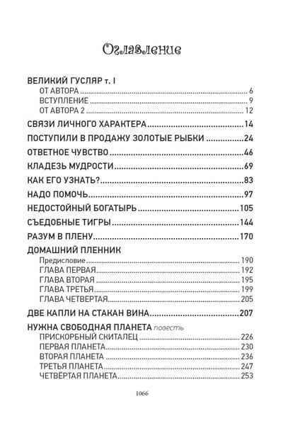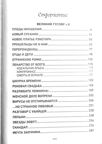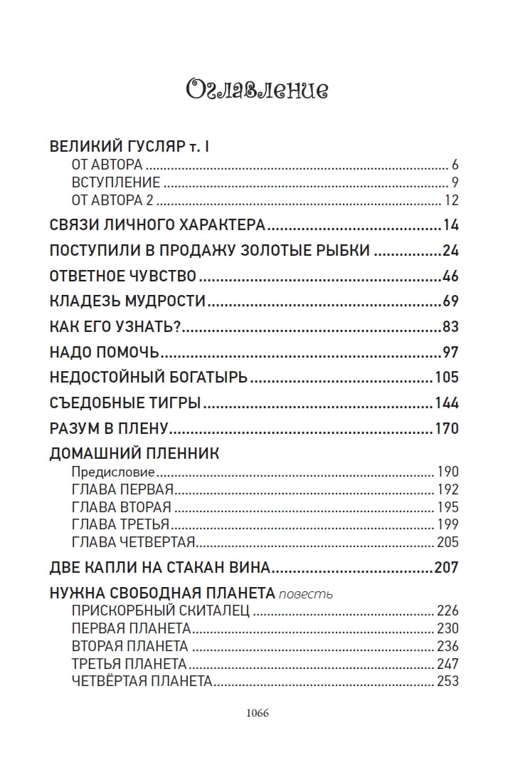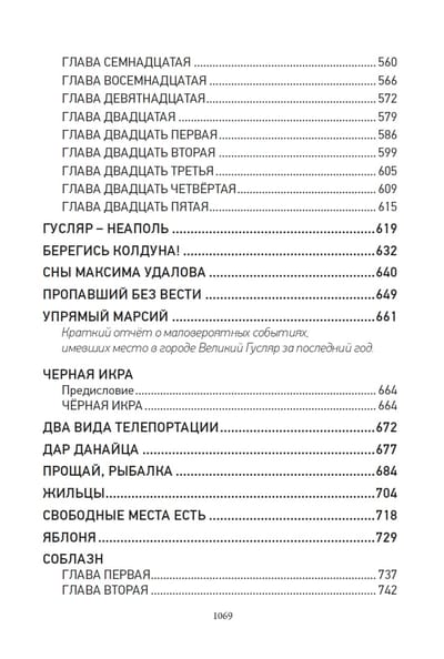 The first volume of the collected works about the Great Guslyar included sixty stories and three novellas by Bulychev. The second volume of works about the Great Guslyar included forty-two stories and four novellas by Bulychev.