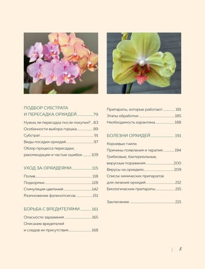This book is for those who have decided to decorate their interior with orchids for the first time and want to maintain the health and beauty of the plant for as long as possible. From the book, you will learn how to properly care for phalaenopsis: whether they need to be replanted immediately after purchase, what substrate is suitable for them, when to apply fertilizer, what is the best way to water and how to get rid of pests once and for all.