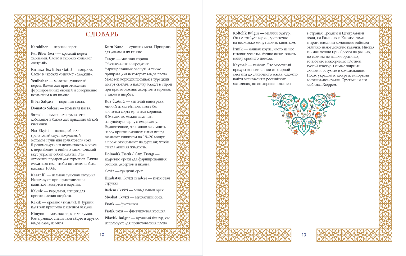 - recipes of Turkish dishes and sweets directly from the table of the sultan;