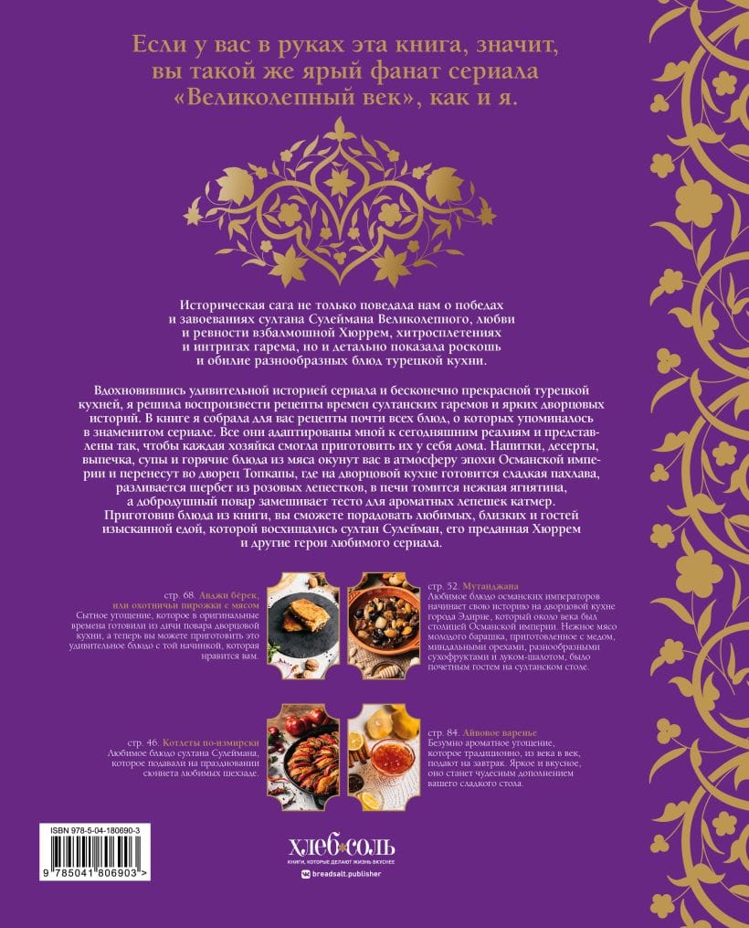 All recipes following the footsteps of the popular TV series "The Magnificent Century" are prepared by the author and adapted to modern products and technologies.