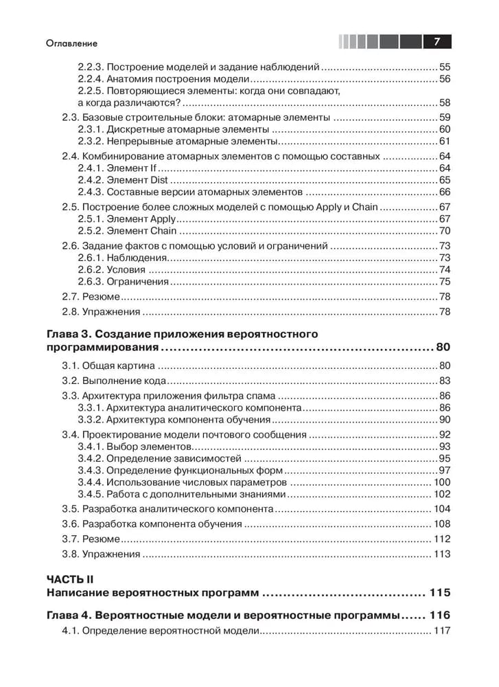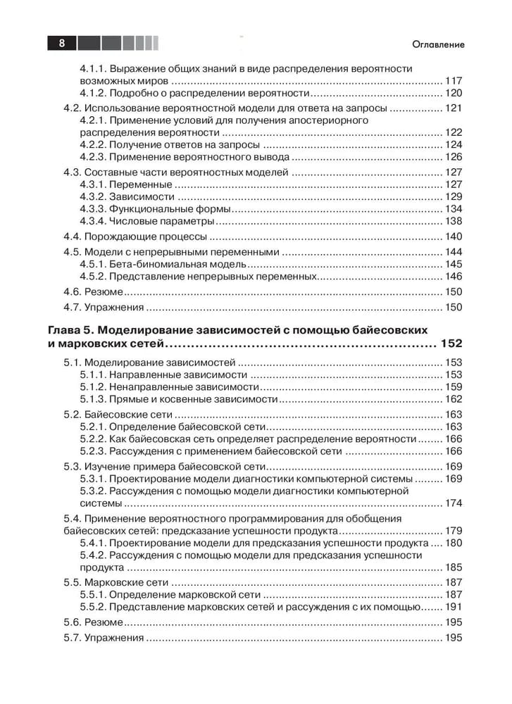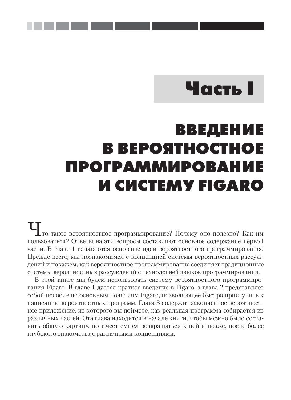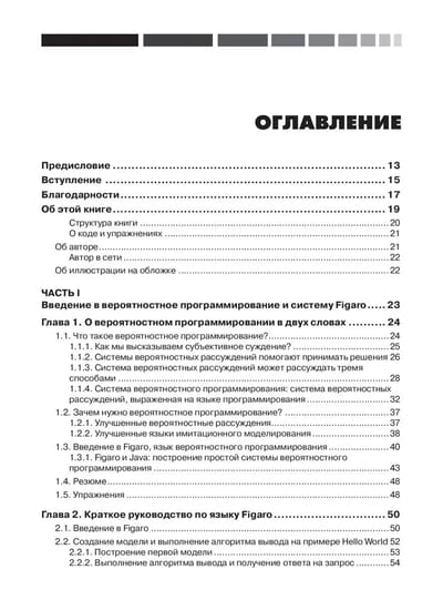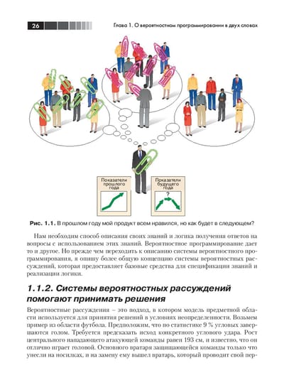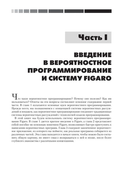 The book is an introduction to probabilistic programming for practicing programmers. The author moves almost immediately to practical examples: building a spam filter, diagnosing errors in a computing system, and restoring digital images. You will be introduced to probabilistic inference, where algorithms help predict, for example, the use of social networks. Along the way, you'll learn about the use of functional programming style to analyze texts, object-oriented models to predict the distribution of tweets, and open-universe models to measure social network phenomena. The book also has chapters on how probabilistic models help in decision making and modeling dynamic systems. The data you collect about customers, products, and site users can assist not only in interpreting the past, but also in predicting the future. Summary: - Introduction to probabilistic modeling; - Writing probabilistic programs in Figaro; - Building Bayesian networks; - Predicting the product life cycle; - Decision algorithms.