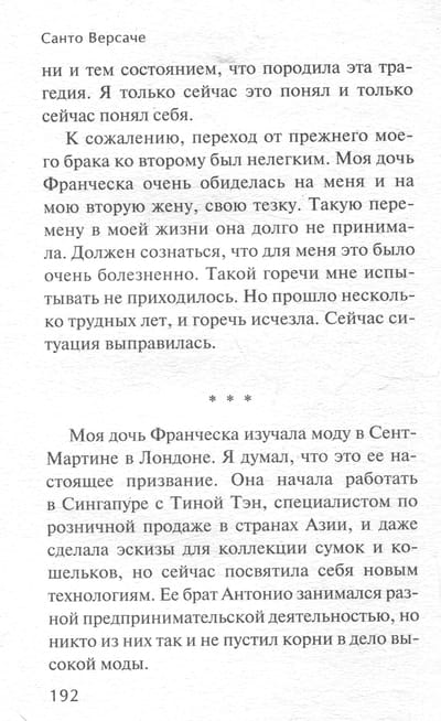 Gianni Versace is a world-famous fashion designer whose name has become synonymous with the world of luxury since the mid-1970s. A genius of fashion, he made women sensual and elegant. Linda Evangelista, Cindy Crawford, Naomi Campbell worked with Versace, whom he elevated to the rank of supermodels. Elton John, Sting and Princess Diana were his friends. But the resounding success of Gianni Versace is due not only to his genius, but also to the talent of his older brother Santo. Santo Versace, a qualified economist and politician, gave up his career to help Gianni create a fashion house - and followed him into the world of luxury, glamour, incredible ups, downs and dramas. The book Santo Versace is an autobiography of a family from the world of fashion, telling about the development of the talent of Gianni Versace, the incredible success of the fashion house and the family love, thanks to which an ordinary Italian family was able to conquer the world. This is the first book by a member of the Versace family - about life spent next to the genius Gianni.