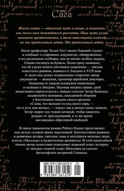 Set in London in the 1660s and early twenty-first century, the novel interweaves the stories of two women: Esther Velasquez, a refugee from Amsterdam who became a scribe for a blind rabbi shortly before the plague struck London, and Professor Helen Watt, who, despite her age and failing health, still burns with a passion for history. When a former student invites Helen to examine a cache of accidentally discovered seventeenth-century documents, she enlists the help of Aaron Levy, an impatient but charming American graduate student, and embarks on the last project of her academic career: to discover the identity of a mysterious scribe who signs his name with the single letter "aleph". Despite the fact that the heroines are separated by centuries, both must make hard choices and sacrifices to reconcile the lives of heart and mind.