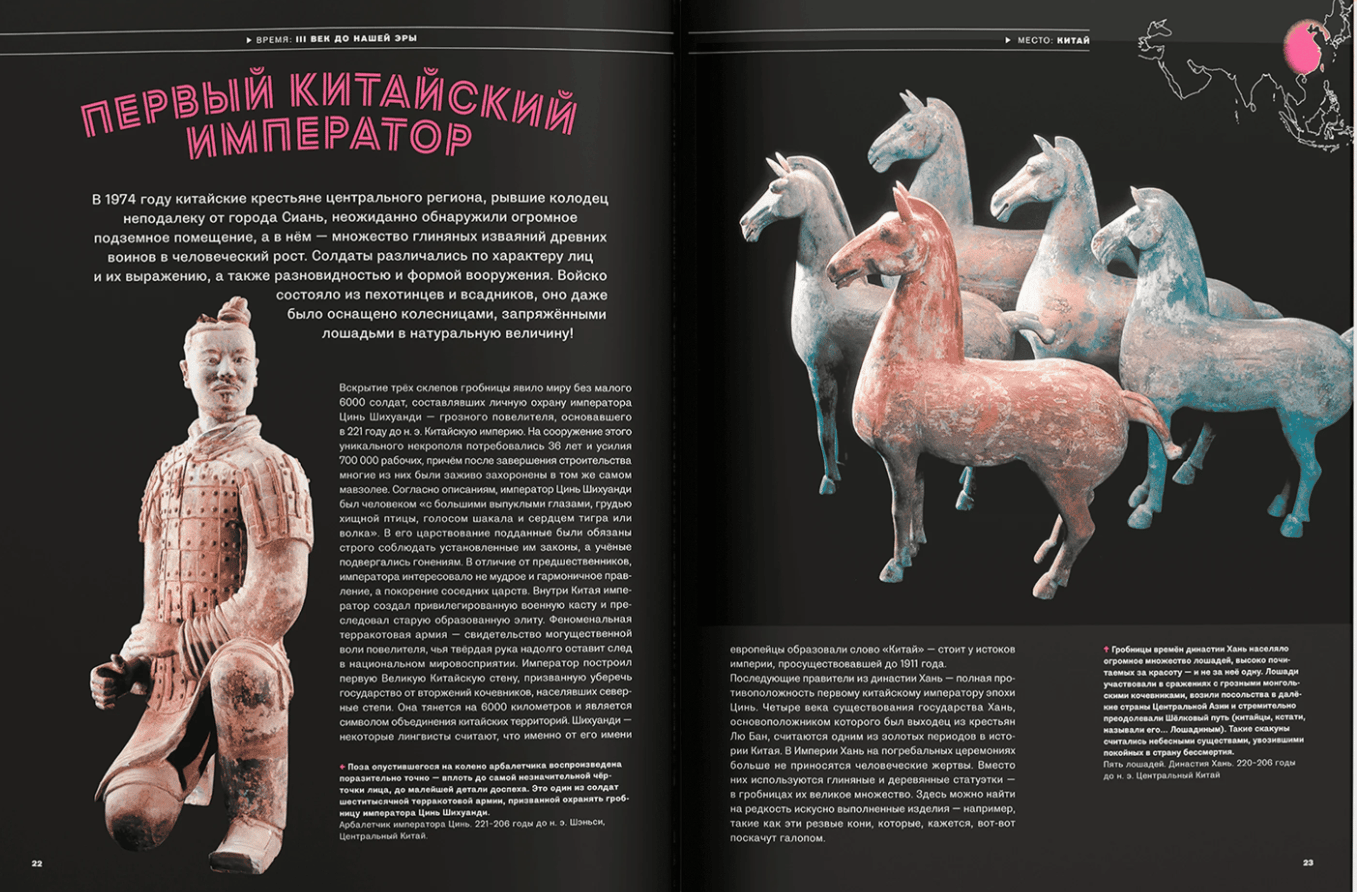 This colorful book-album will tell you and your children about the history of world civilizations through the works of outstanding craftsmen and artists. In search of a hundred world masterpieces, take a trip around the world like Marco Polo to discover great civilizations and milestones in the history of mankind.