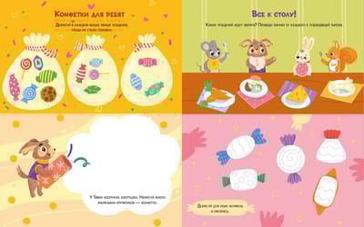 Inside, you'll find a variety of activities from Santa Claus and the Snow Maiden: funny drawing games, mazes, and brain teasers. Count gingerbread cookies, color Christmas tree decorations, and help the animals find their holiday outfits! And at the end, you can write a letter to Santa Claus. Enjoy the New Year's activities in this Clever book, and let's all play together!