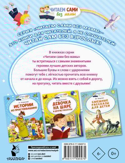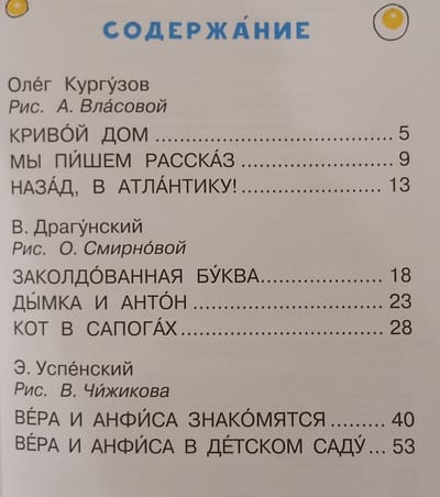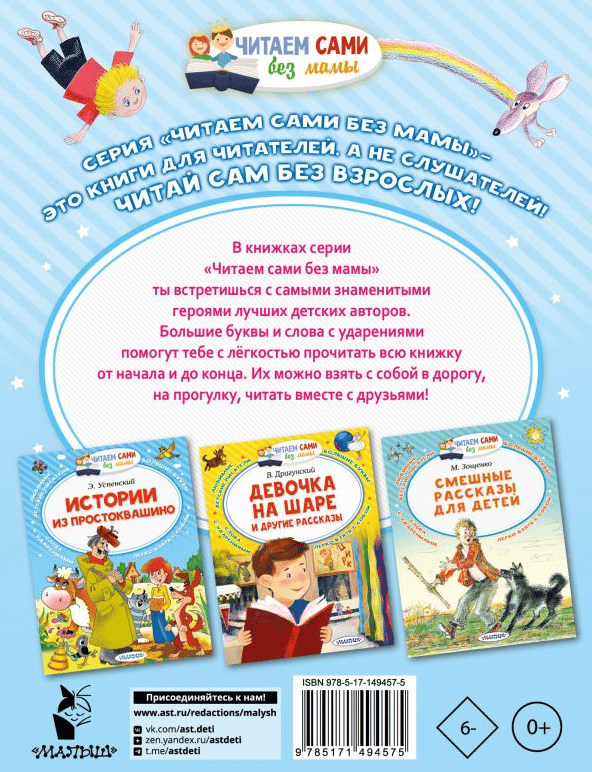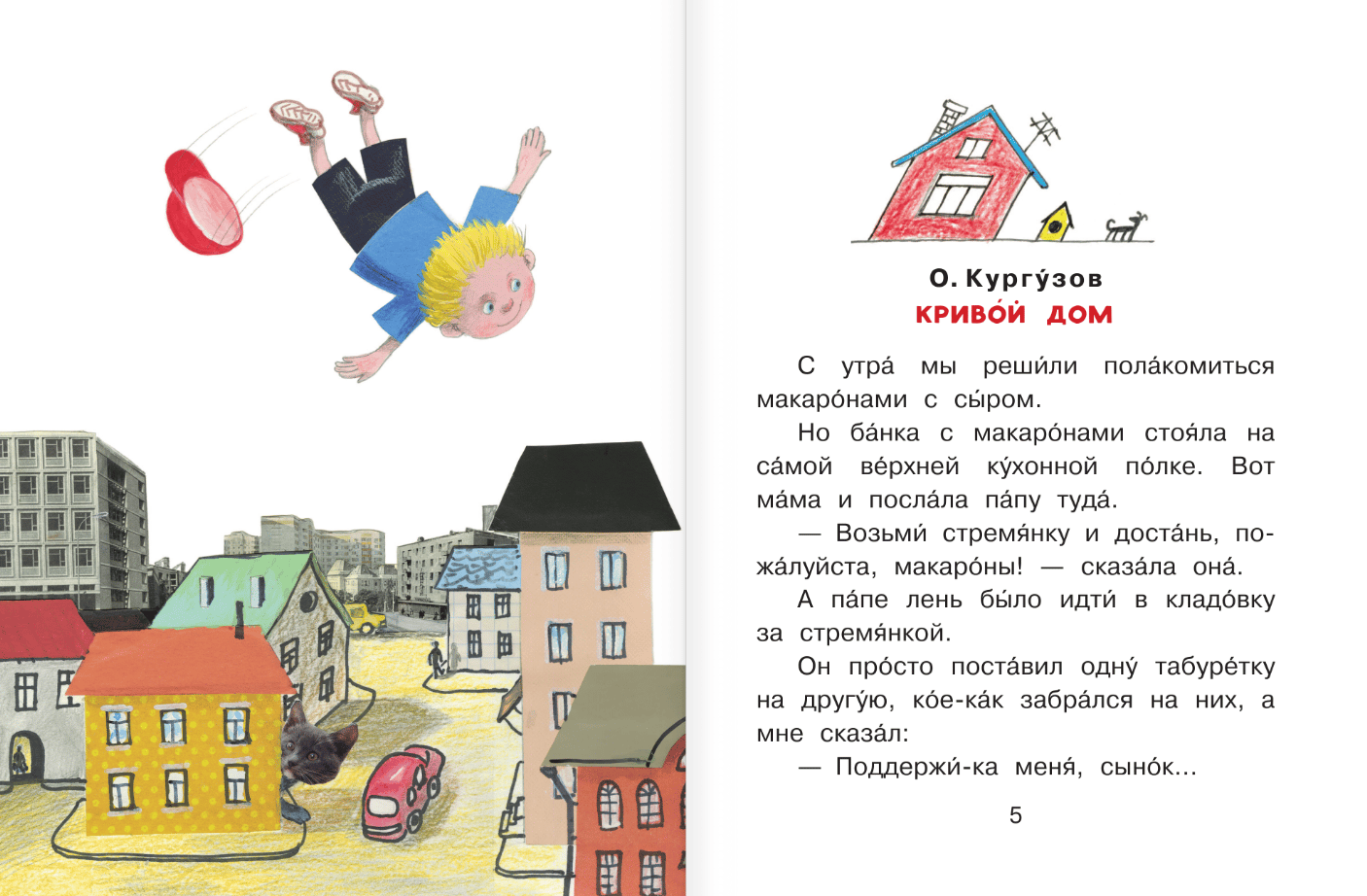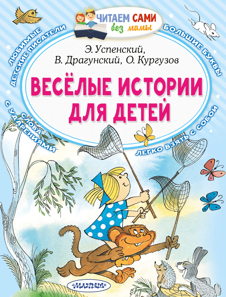 The book includes funny stories by famous Russian authors E. Uspensky, V. Dragunsky and O. Kurguzov, which will put you in a good mood for the whole day! Together with the restless and inquisitive characters, kids will learn why the herring goes to the Atlantic, what the magic word "syski" means and how the monkey Anfisa first went to kindergarten. Funny stories will not only cheer up readers, but also help to think about the rules of behavior. All words of the text are given with accents to help kids independently familiarize themselves with the works of the great classics of children's literature.