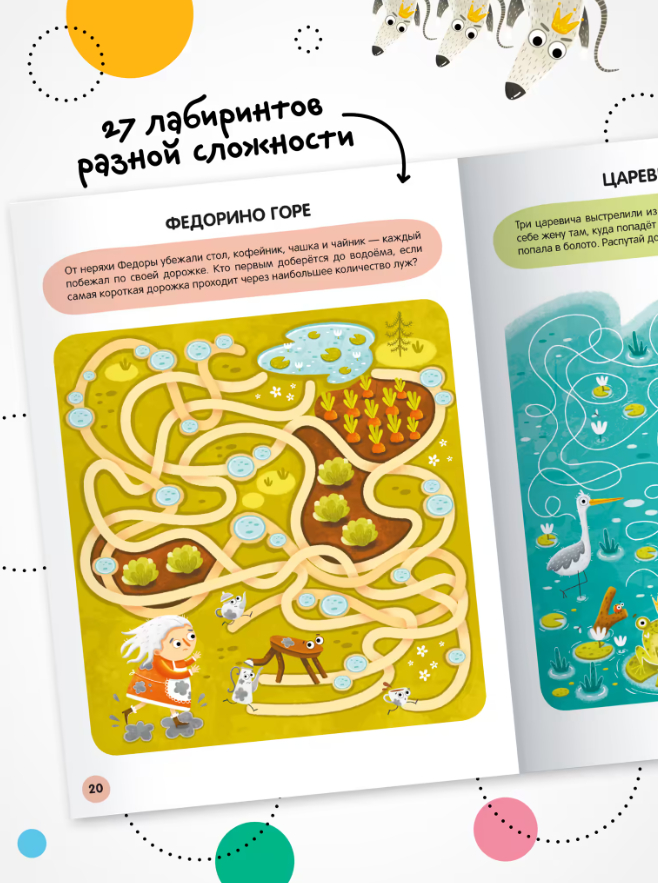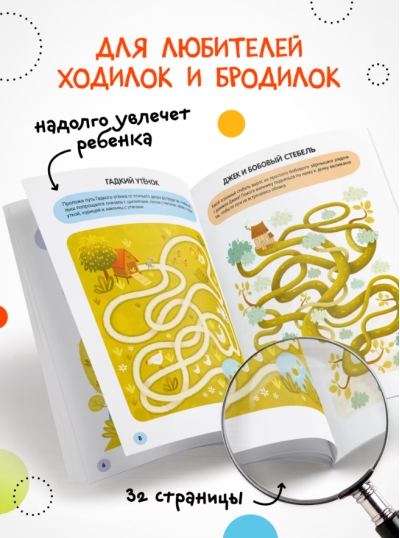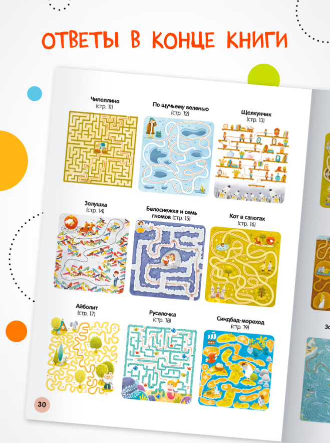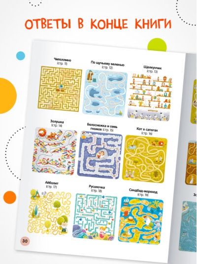 The book "Fairy Tales" series "Merry Labyrinths" is an excellent choice for young lovers of walkers and tramps. In the book you will find 27 mazes of different types and difficulty levels with answers. Together with fairy tale characters, the child will find a way out of the most intricate labyrinths and help the characters complete all the tasks. And labyrinths help the development of fine motor skills, attentiveness and thinking.