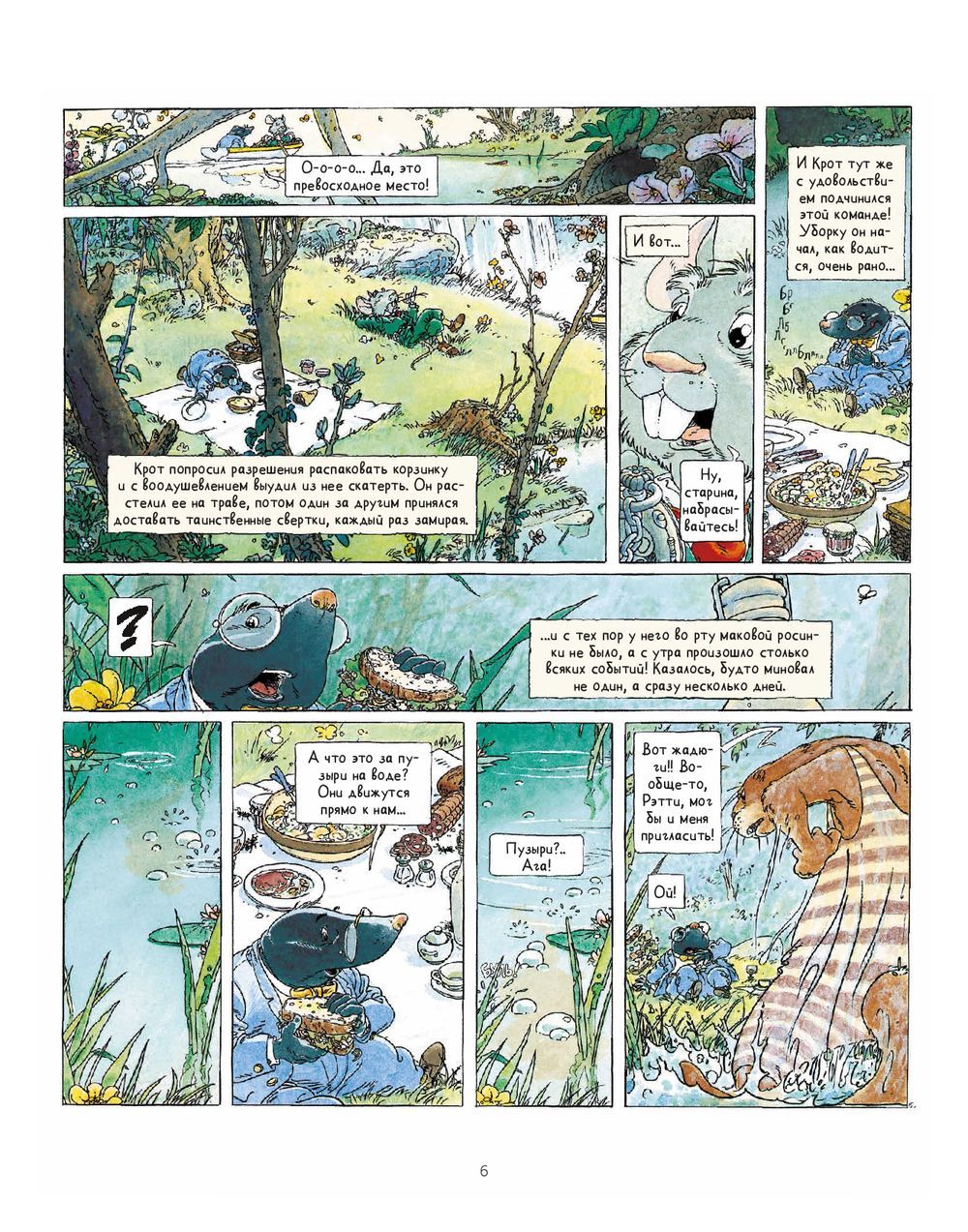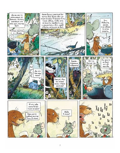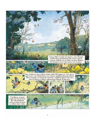 One beautiful spring day, Mole decided to get out of his burrow, he could sense that something important was waiting for him outside. And he was right. Upstairs Mole meets the faithful and good-natured Rat, a water rat. Together they go on a picnic to enjoy all the beauty around them. During their little journey, they meet the grumpy old Badger, the devoted family man Otter and, of course, the brilliant Toad, whose pranks bring an end to their quiet life. "The Wind in the Willows" - an adventure story about the power of true friendship, kindness, courage and mutual support. And the magnificent watercolor illustrations by Michel Plessis only emphasize the beauty of this tale, making us linger on every frame and look at every detail. The Russian language adaptation is by Mikhail Khachaturov, a researcher of European comics. It is based on Irina Tokmakova's classic translation of the "voice" of Alice, Winnie the Pooh and the Mummy Trolls. This translation has been relevant for more than 30 years.
