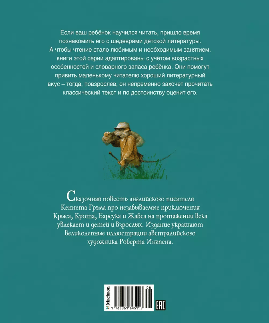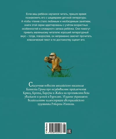 The fairy tale of the English writer Kenneth Graham about the unforgettable adventures of the Rat, Mole, Badger and Toad for a century captivates both children and adults. The publication is decorated with magnificent illustrations by Australian artist Robert Ingpen.