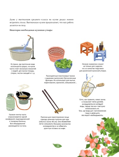What flavor combinations are typical of Vietnamese cuisine? What dishes are typical for different regions and are essential attributes of holidays? What do the Vietnamese eat every day? How to cut ingredients? How to make a delicious banh mi? What desserts and drinks do people in Vietnam like?