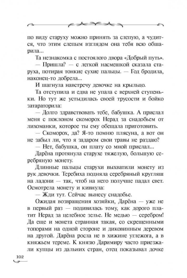 Darena is the daughter of Prince Darimir and the sorceress Swan Maiden. At the age of 11, the girl ran away from her father's house: after all, the prince promised that she would be given in marriage to a neighboring ruler, cruel and old. The princess wandered for a whole year - looking for the man who got his hands on the magic feather that her mother gave her as a farewell gift. But it is not Darena's mother who finds her, but Nezvana - the widow of a robber chieftain, and she takes the girl as her adopted daughter. Nezvana was once a sorceress's apprentice, so she knows a lot about the world of evil spirits and conspiracies. She even receives a treasure, winning it from a shishiga, and buys an inn in the trading city of Zvenets. Many adventures await Darena and Nezvana: they expose a barbarian spy, help find a new brownie for a friend, fall into the clutches of a werewolf, escape from an evil witch and even meet the ancient god Veles. And also... Darena's first love awaits!