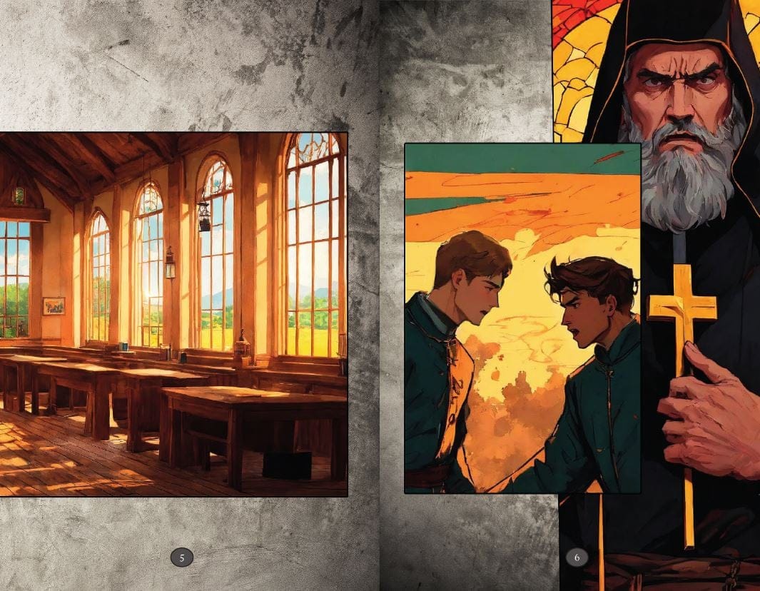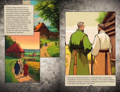 The pages of this graphic work present detailed gloomy illustrations, ideally suited to the tone of the narrative and folklore plots.