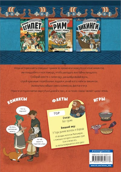 Young historians will make a jump in time and find themselves in the Viking Age, they will need your help to unravel all the mysteries of the past. It will be an exciting journey as you decipher runes, build beautiful ships and learn all about Viking raids. This book is a fascinating mix of comics, facts and games. Historionauts is an exciting mix of comics, facts, and games! Young explorers will jump through time and find themselves in the Viking Age, they will need your help to unravel all the mysteries of the past. It will be an exciting journey as you decipher runes, build beautiful ships and learn all about Viking raids.
