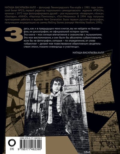 Natasha Vasilyeva-Hull has been a photographer for the Leningrad Rock Club since 1981 (membership card #13). She was the first editor of the underground samizdat magazine "ROXY." Beginning in 1973, she photographed rock musicians' friends, including "Akvarium," "Alisa," "Zoopark," "KINO," "Nautilus-Pompilius," and "Pop-Mekhanika." In 1994, she received an invitation to work for New Generation magazine. She was the first Russian photographer accredited to photograph the Rolling Stones (Wembley Stadium concert, 1995). "Here, as in my previous books, you will find no biography, discography, or official history of the band.