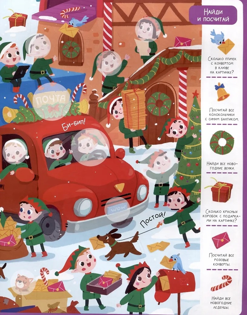 Wimmelbook with stickers. Magical New Year
