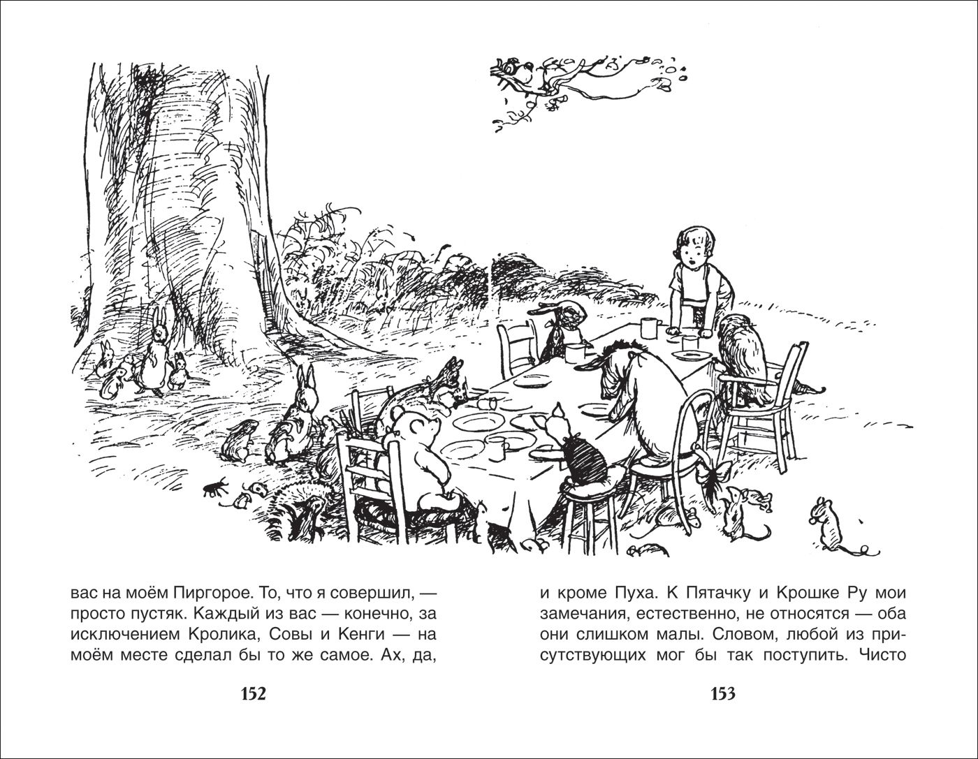 This book contains stories from the Winnie-the-Pooh series about the cheerful, always cheerful bear and his friends: Christopher Robin, Piglet, Rabbit, Eeyore, and many others. They were created by the remarkable English writer A. A. Milne, and the illustrations were drawn by the renowned artist Ernest Howard Shepard. The stories were narrated in Russian by poet and translator Boris Zakhoder.