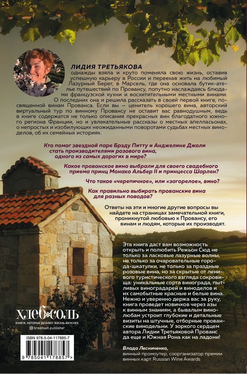 The book by Lidia Tretyakova, a longtime wine lover living in Provence, is an author's virtual tour of local wineries, allowing you to explore the features of local white, red and rosé wines, get acquainted with the stories of their producers, and learn more about the magical world of winemaking in the south of France and the Côte d'Azur. The narrative full of lyricism and entertaining facts will not leave indifferent neither beginners, nor amateurs, nor professionals in the subject of French wines.