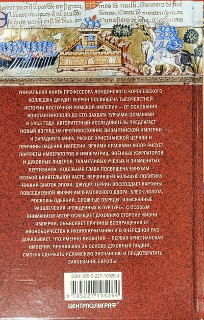 A unique book by Professor Judith Herrin of King's College London is devoted to the thousand-year history of the Eastern Roman Empire - from the foundation of Constantinople to its capture by the Ottoman Turks in 1453. The authoritative researcher offers a new look at the confrontation between the Byzantine Empire and the Western world, the split of the Christian church and the reasons for the fall of the empire. The author paints vivid portraits of emperors and empresses, military usurpers and spiritual leaders, talented scientists and famous courtesans. A separate chapter is devoted to eunuchs - a special influential caste that made big politics. A subtle connoisseur of the era, Judith Herrin recreates pictures of the everyday life of the imperial court: the glitter of gold, the luxury of clothing, complex rituals, exquisite entertainment of those "born in purple". The author pays special attention to the spiritual side of the empire's life, explains the reasons for the return from iconoclasm to icon veneration, and once again proves that it was Byzantium, the first Christian empire to take spiritual feat as its basis, that was able to contain Islamic expansion and prevent the conquest of Europe.