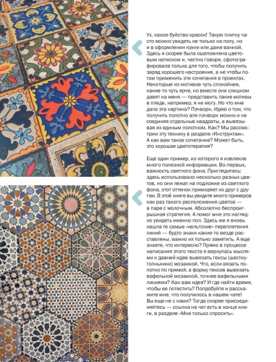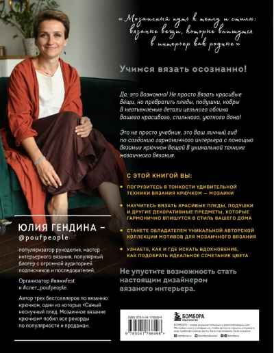 In the new book popularizer of needlework and best-selling author of knitting Julia Gendina will tell not only about the technology of mosaic crochet, but also how you can apply this skill to create beautiful and stylish decorative objects. You will learn about modern trends in interior design, about the subtleties of color and pattern selection, about what decorative elements can become the center of attention in your room. Learn to create a harmonious image that will convey your individuality, get a lot of examples that will help you transform your home into a cozy nest, from which it is impossible to take your eyes off. And the author's collection of patterns will feed your inspiration for years to come. You will become a true expert in knitted interior design.