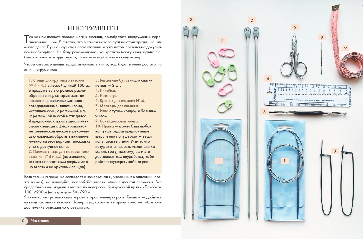 Maria Zakrzhevskaya suggests starting right away with practice: pick up your knitting needles and immerse yourself in knitting without wasting time on exercises. You'll knit a scarf, a hat, socks, mittens, and even a sweater, mastering all the necessary techniques along the way.