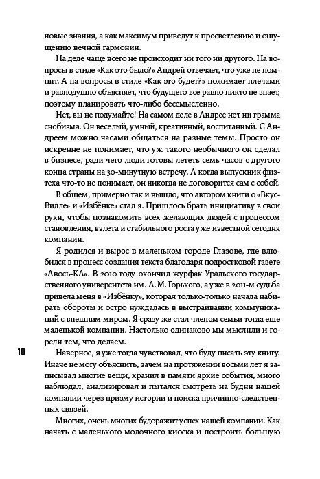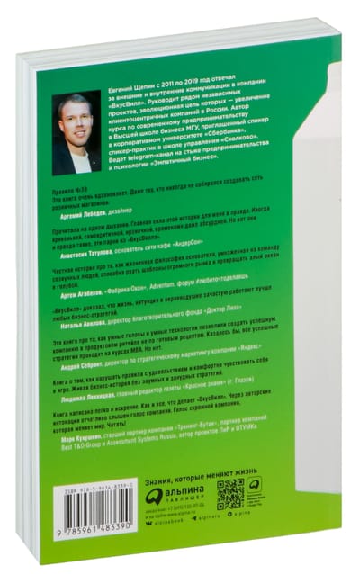 How do you build a large grocery chain, starting with a small milk kiosk and without taking out a single loan? How to surface from the scarlet ocean, dive into the blue ocean and double your turnover every year? How not to lose the spirit of a startup in 10 years? How to manage a company with more than 5000 employees without strict orders and regulations, prescribed KPIs and a planned annual budget? What kind of managers should be in such a company? How do you select a team that you don't want to leave? The food chains VkusVill and Izbyonka are familiar to many people, their products are loved and recommended to friends. The company broke into the healthy food market and revolutionized the retail industry. The company broke into the market of healthy food and revolutionized the retail trade. The book by Evgeny Shchepin, one of the key employees of VkusVill, is an honest account of the company's successes and failures, plans and expectations, attitude to employees and customers, and, of course, the people without whom VkusVill would never have become what we know it to be today.