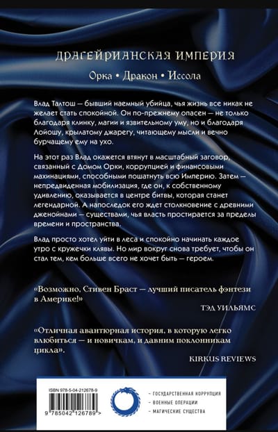 This time, Vlad Taltosh is in real trouble. He simply wanted to help the young man who once saved his life, but found himself drawn into a game with the powerful House Orca to uncover a massive financial conspiracy. Then he accidentally enlisted in the army (which, for a hired killer, sounds like a career failure). And, like icing on the cake, he set off to rescue his friends, who seemed to have fallen into the clutches of reality-bending creatures. That is, the Jenoi. Yes, those mythical creators of the world.