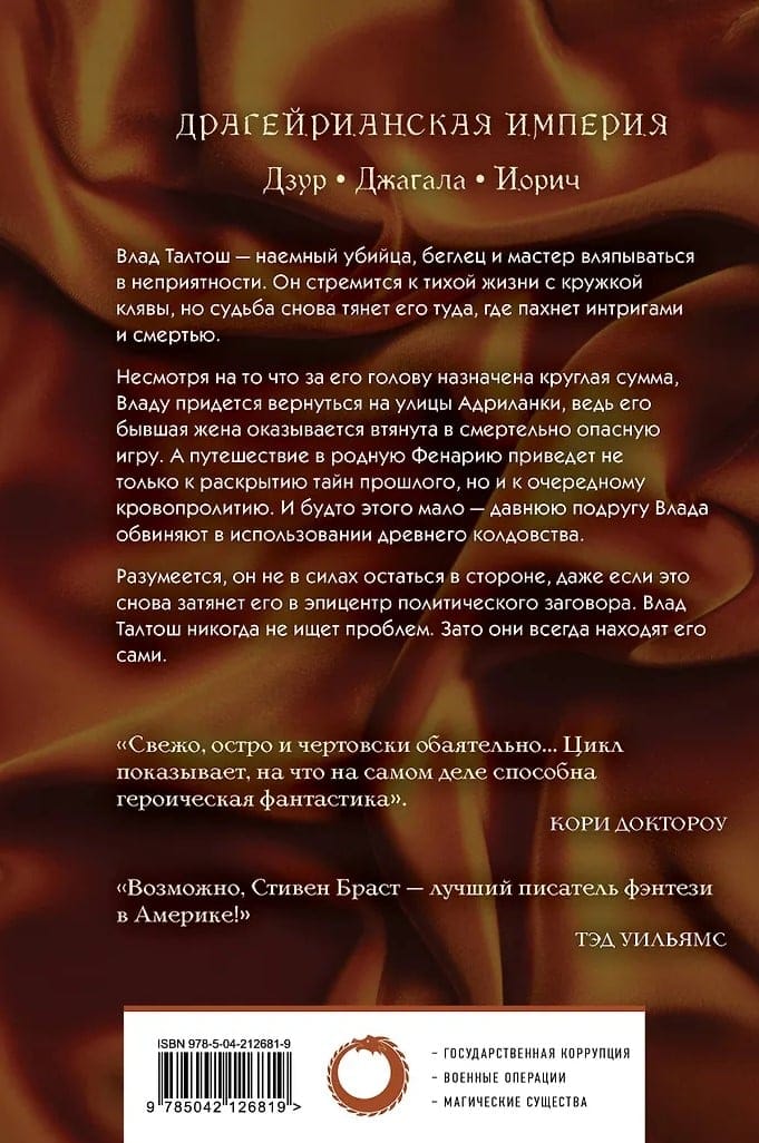 Vlad Taltosh has always had to rely on his wits and cunning. He once took his place among the elite of Jhereg—a noble house that controlled crime in the great city of Adrilankha. But love, revolution, betrayal, and revenge destroyed everything he knew. After a long time, Vlad returns to Adrilankha. His old enemies can't decide whether to kill him outright or talk to him first and eliminate him later. Vlad's former affairs have now been taken over by the mysterious organization "The Left Hand," and his wife finds herself in mortal danger...
