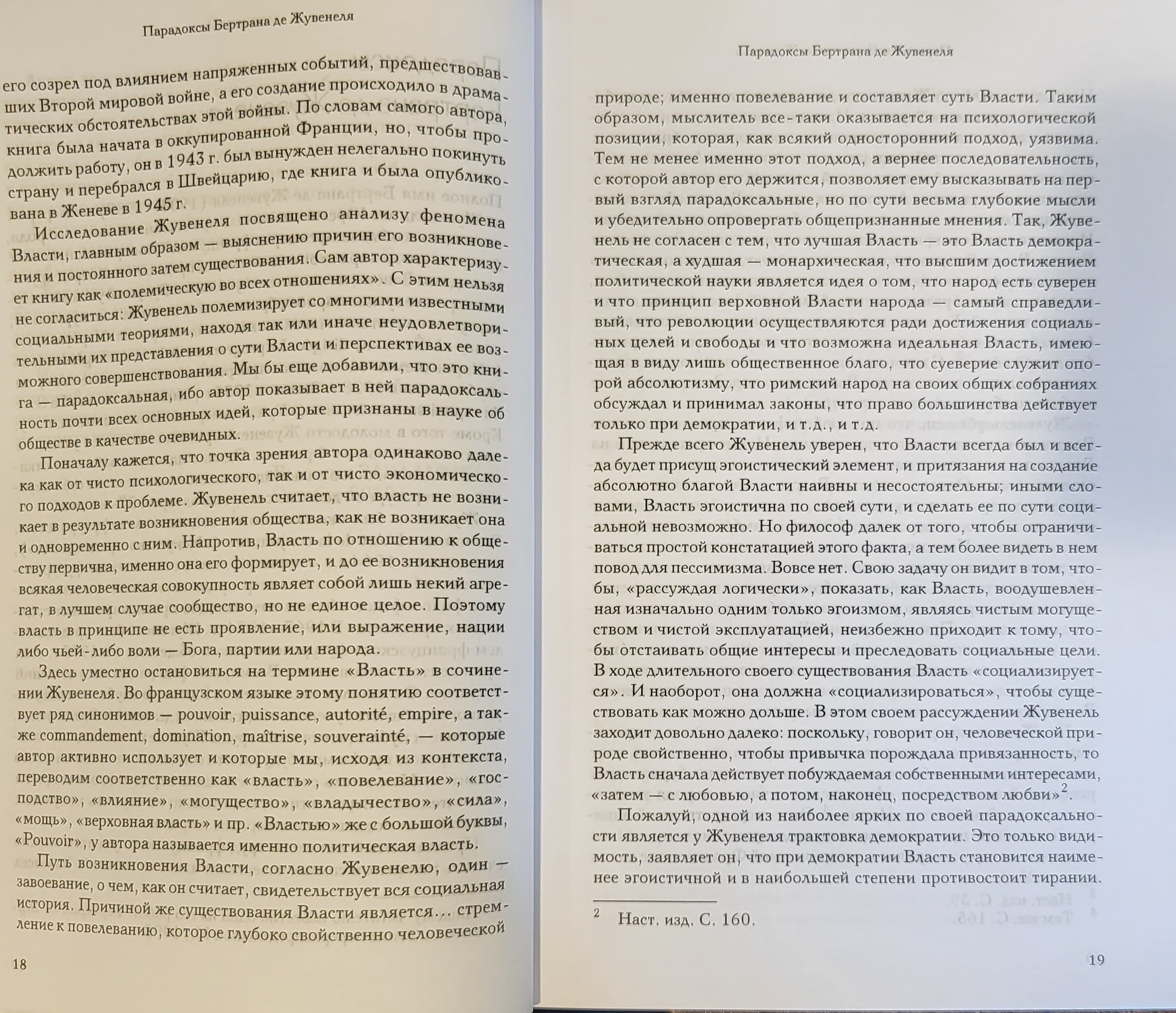 Bertrand de Jouvenel, a prominent French political thinker of the 20th century, in his book provides a comprehensive analysis of the phenomenon of political power in both theoretical and historical aspects. The author examines various theories of sovereignty and shows to what results the application of these theories in practice leads. In his opinion, power is characterized by an indestructible desire for expansion. The scholar identifies the psychological roots and cultural consequences of this expansion. The book pays special attention to the relationship between power and law. B. de Jouvenel traces the evolution of political institutions throughout the democratic era, which gave presidents and parliaments the kind of power that medieval barons would have envied. The book vividly shows the dangers hidden in modern democracy, as well as the totalitarian tendencies lurking in the doctrine of the sovereignty of the people.