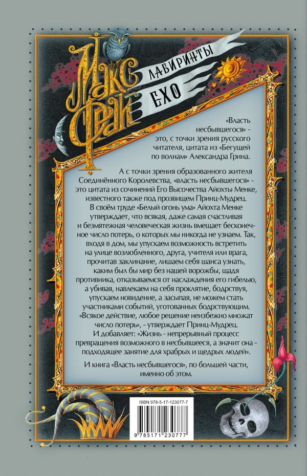 "The power of the unfulfilled" is, from the point of view of a Russian reader, a quote from Alexander Green's "Running on Waves". And from the point of view of an educated resident of the United Kingdom, "the power of the unfulfilled" is a quote from the writings of His Highness Ayokhta Menke, also known by the nickname Prince Sage. In his work White Fire of the Mind, Ayokhta Menke argues that every, even the happiest and most serene human life contains an infinite number of losses that we will never know. Thus, entering a house, we miss the chance to meet a lover, a friend, a teacher, or an enemy in the street; reciting a spell, we deprive ourselves of the chance to know what the world would be like without our conjuration; sparing an enemy, we deny ourselves the pleasure of his death, and killing him, we bring a curse upon ourselves; being awake, we miss a dream, and falling asleep, we cannot become participants in the events prepared for those who are awake. "Every action, every decision, inevitably multiplies the number of losses," the Sage Prince asserts. And adds: "Life is a continuous process of turning the possible into the unfulfilled, which means it is a suitable occupation for brave and generous people." And the book The Power of the Unfulfilled is, for the most part, about just that.
