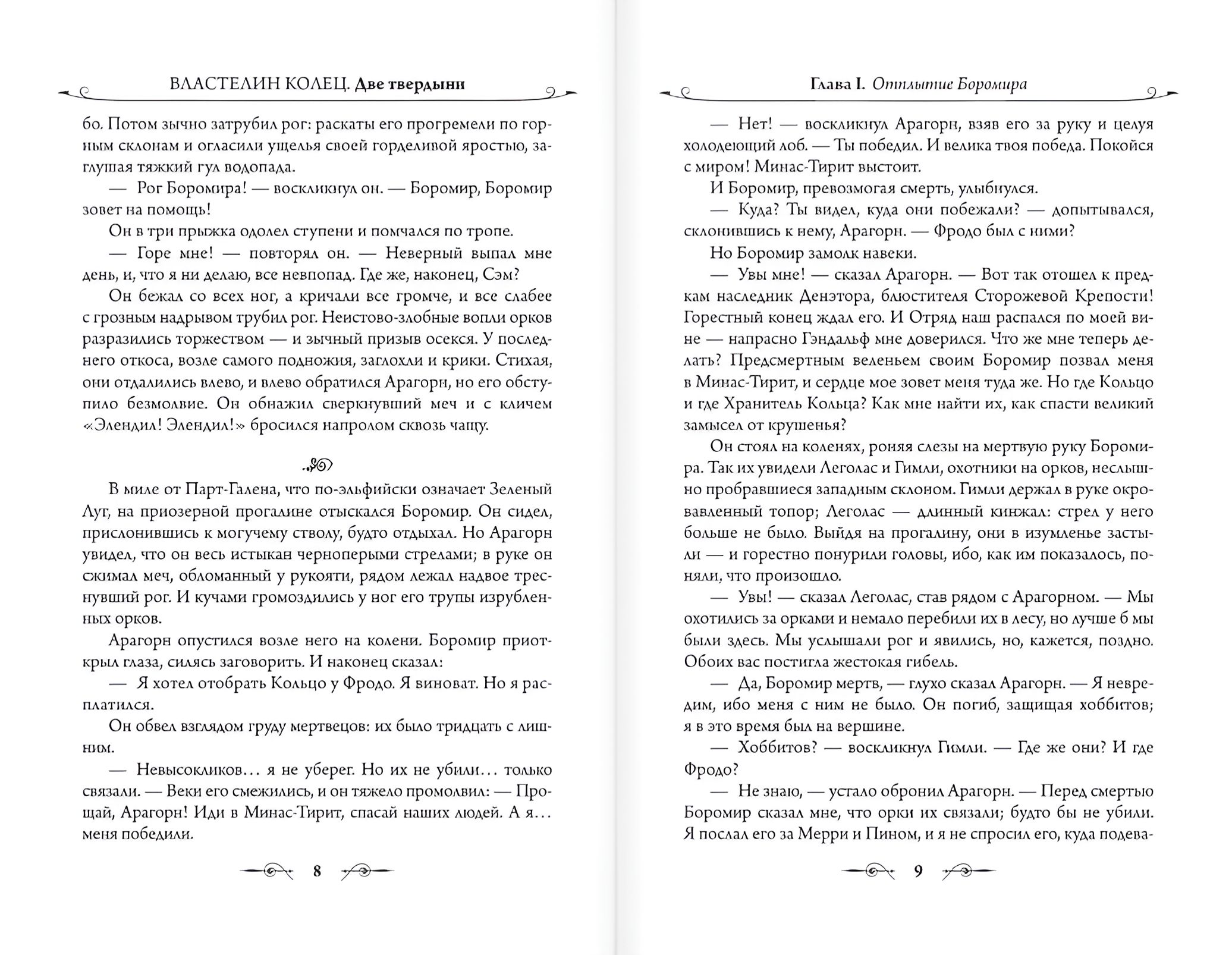 In the second book, The Two Towers, the band of Ringbearers disintegrates, and war comes to the land of Rohan—the realm of the Free Riders, allies of Gondor. Aragorn, Gimli, and Legolas, along with the younger hobbits, aid the Rohirrim in a fierce battle against the forces of the dark wizard Saruman, while Frodo and Sam's path leads to the Pitchfork Mountains and beyond, to the gloomy fortress of Cirith Ungol, where a secret passage into the Dark Land opens...