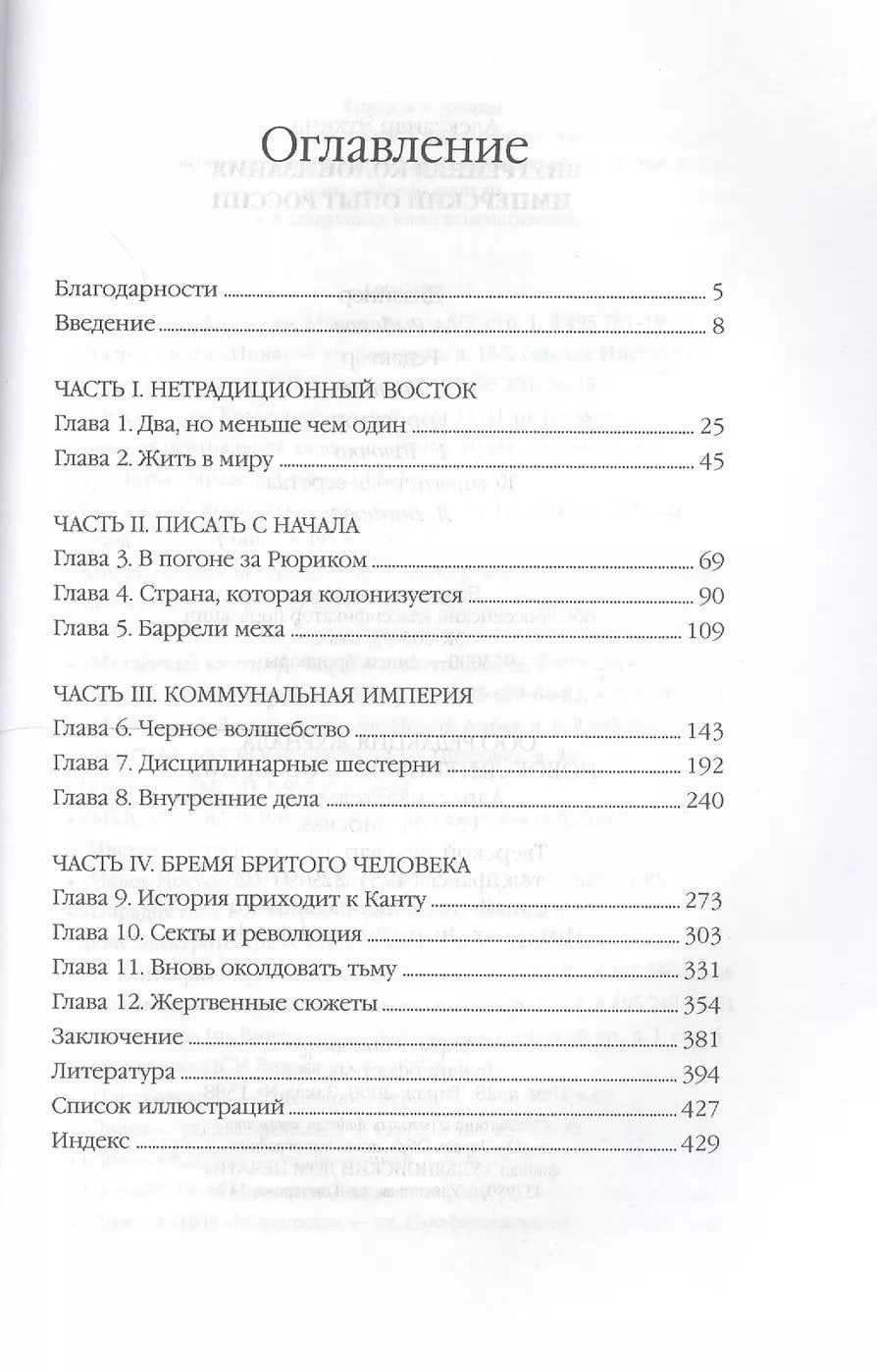 The book by Alexander Etkind, a renowned philologist and historian and professor at the European University Institute in Florence, tells the story of how the Russian Empire seized foreign territories and developed its own lands, colonizing many peoples, including Russians themselves. Etkind speaks at length about the limits of applying Western notions of colonialism and orientalism to Russian culture, about the formation of the language of self-colonization among Russian historians, about serfdom and the peasant community as colonial institutions, and about the attempts of literature to resolve in its own way the problems of internal colonization posed by Russian history. Moving from history to literature and back again, Etkind provides unexpected interpretations of critical texts on the imperial experience authored by Defoe and Tolstoy, Gogol and Conrad, Kant and Bakhtin.