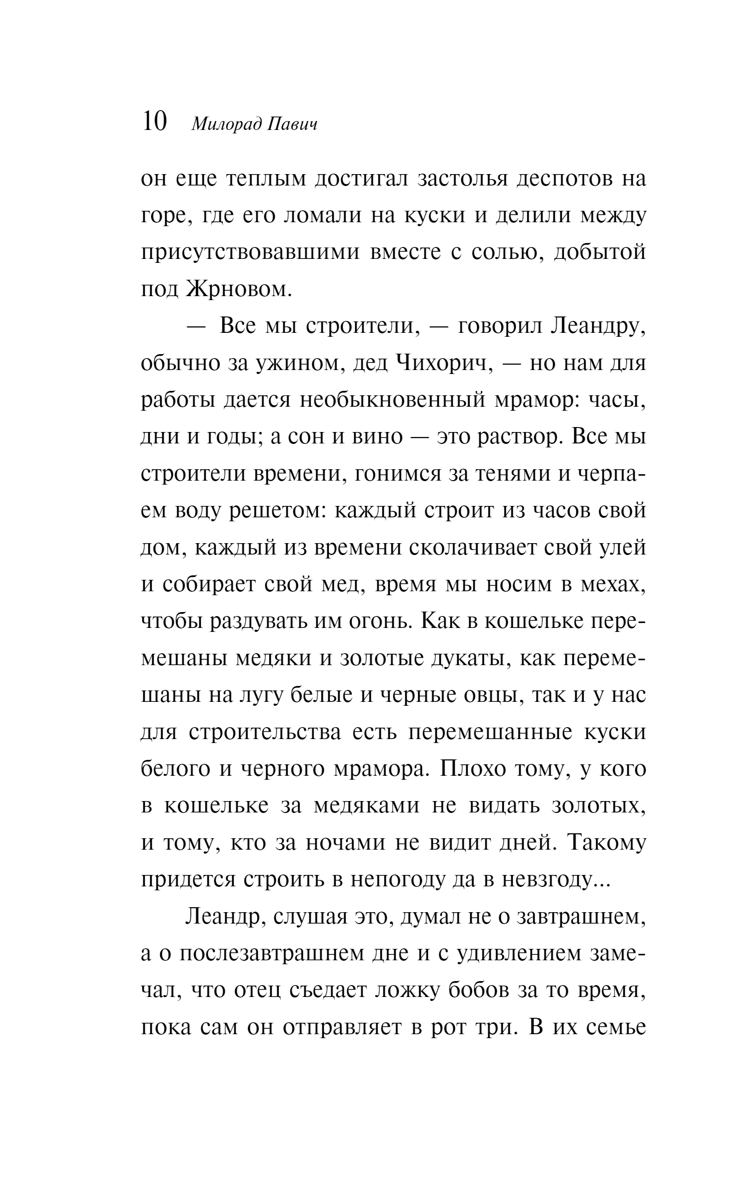 Hero and Leandra are separated by centuries, but they sense or, better said, anticipate each other through the ages. Thin threads stretch between them across the canvas of time that the reader can try to find and tie together.