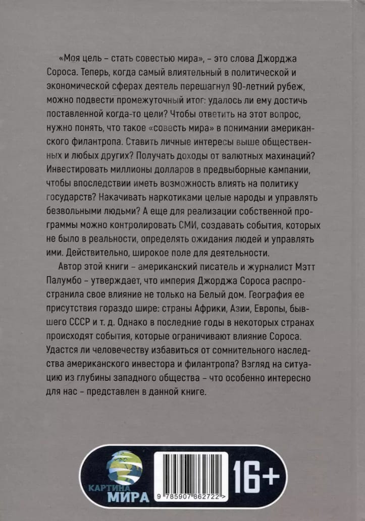 The author of this book - American writer and journalist Matt Palumbo - claims that George Soros' empire has extended its influence not only to the White House. The geography of its presence is much wider: the countries of Africa, Asia, Europe, the former USSR, etc. However, in recent years, there have been developments in some countries