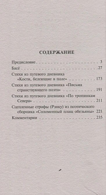 This collection includes works by Matsuo Basho from different years, which can help the reader to form a clear and precise idea of the stylistics of the man who actually personally created the genre that was to become (and forever remain) a kind of symbol of Japanese poetry - haiku.
