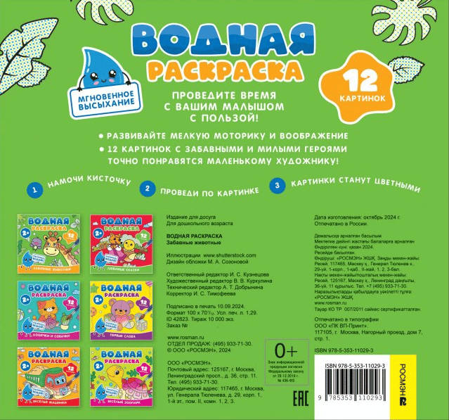 Spend quality time with your little one! Develop fine motor skills and imagination. 12 pictures with funny and cute characters are sure to please your little artist!