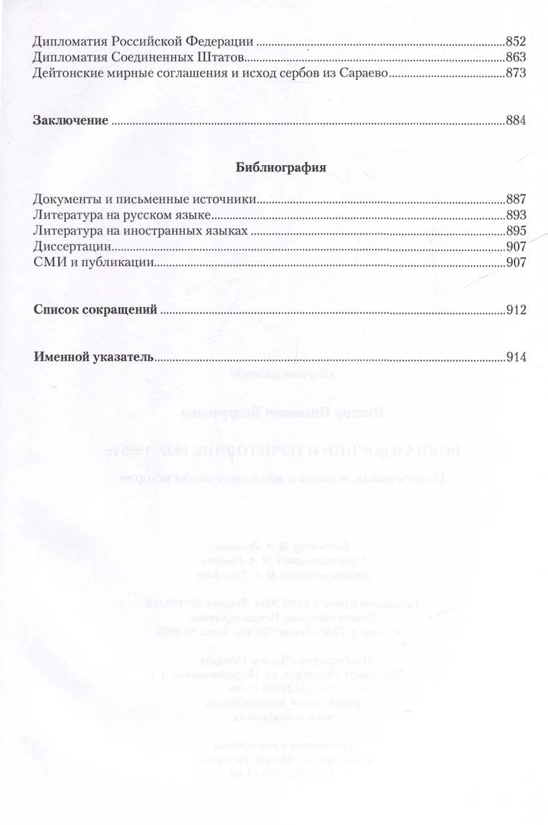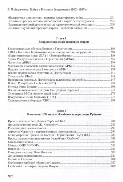 The monograph provides the reader with a comprehensive analysis of the military, political and diplomatic aspects of the war in Bosnia and Herzegovina in 1992-1995. The author reveals the historical and ideological foundations of the national movements in Bosnia and Herzegovina and their political goals, describes in detail the armed forces of the warring parties and their military operations over four years, as well as the policies of the leading powers to resolve the conflict and its military and political results. The monograph uses documents from the International Criminal Tribunal for the former Yugoslavia (ICTY) and the archives of the Republika Srpska Center for War Research, Investigation of War Crimes and Search for Missing Persons (RCIRZ) in Banja Luka, as well as materials from the International Independent Investigation Commission into the Sufferings of the Serbs in Sarajevo and the International Independent Investigation Commission into the Sufferings of All Peoples in the Srebrenica Area.