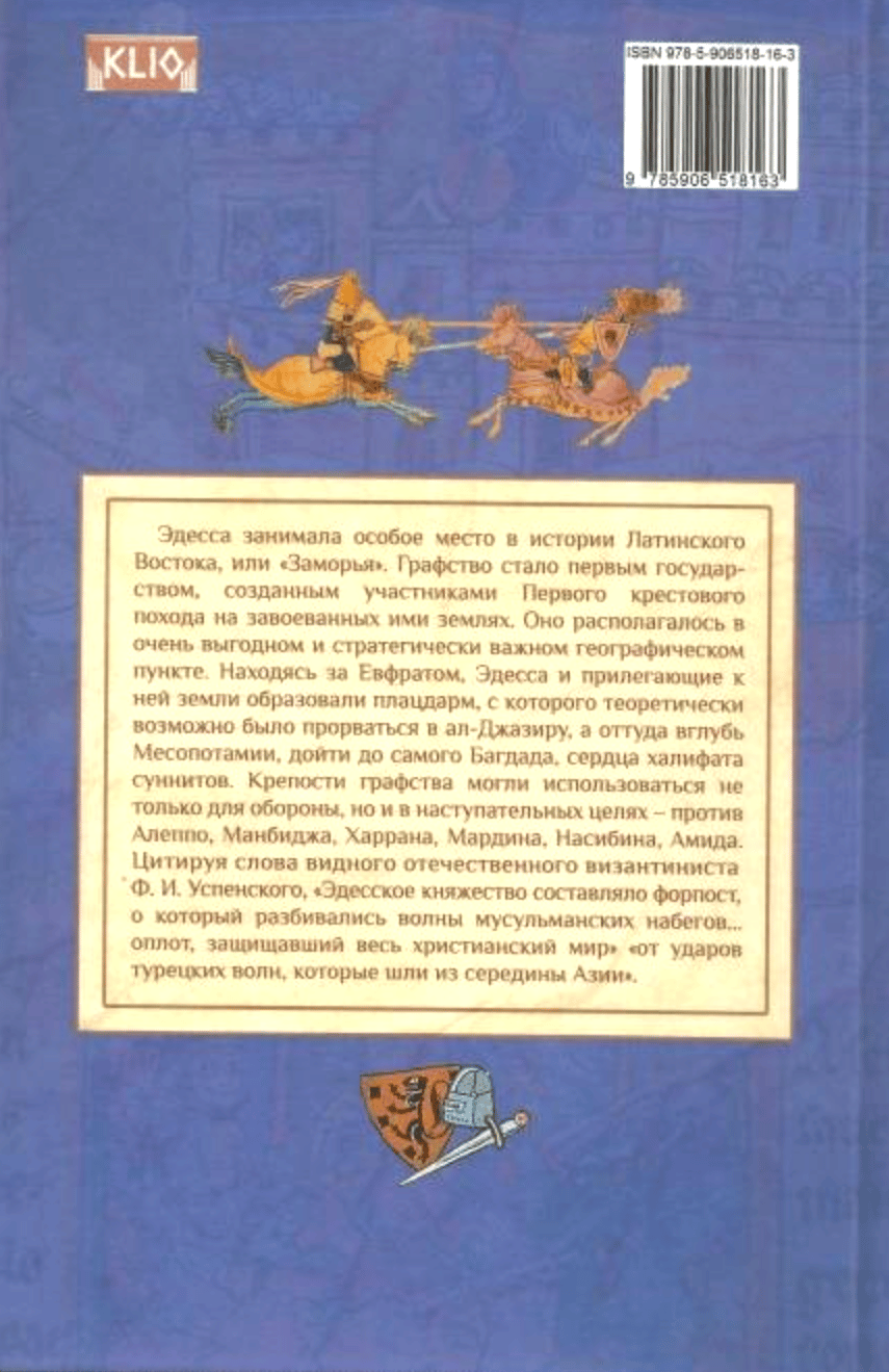 However, despite the uniqueness of the County of Edessa, until recently it has received relatively little attention in the historiography of the Crusades. This study attempts to at least partially fill this gap. Using the County of Edessa as an example, it examines the military affairs of the states founded by the crusaders. The goal of the study is to reconstruct the military organization of the County of Edessa in the late 11th and first half of the 12th centuries. The study examines such key aspects as the structure and size of the Edesan army; the use of allies and auxiliary troops from the local population; Army command, strategy, and tactics; general features and characteristics of "Edesan feudalism"; weapons, equipment, and military symbols of the Edesan army.