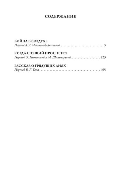 Herbert Wells was keenly interested in the future. The powerful impetus that the writer gave to science fiction can still be felt today. His novel "War in the Air" he wrote in 1907 - just a few years after the first flights of the Wright brothers. Knowledge and intuition allowed Wells to draw bold pictures of the future, but the main thing in them - not predicting the monorail, motorcycles or large-scale development of the air ocean, but a premonition of the inevitable world war, which draws in its deadly maelstrom more and more countries. Unfortunately, Wells' foresight came true in 1914. The writer had a chance to see the Second World War, which he also predicted. It is not by chance that in 1941, five years before his death, Wells wished that the text of the epitaph, printed after his death was the phrase "I warned you. You damned fools!". Another famous novel of the writer - "When the Sleeper Wakes" - can be attributed to the genre of dystopias. Amended and revised version of it was published in 1910. The success of this novel, as well as almost all the works of Wells, was based not so much on colorful descriptions of life in the distant XXI century, as on the disappointing social predictions of the writer, who argued that in the distant future, one tyranny will still be replaced by another, and the life of the common man, on whom little depends, will remain unsettling. And in the twenty-first century, these masterfully written works continue to retain their extraordinary popularity. The design of the collection includes more than a hundred illustrations by foreign artists: A. Michael, A. Lano, F. Jenishek and E. Sullivan.