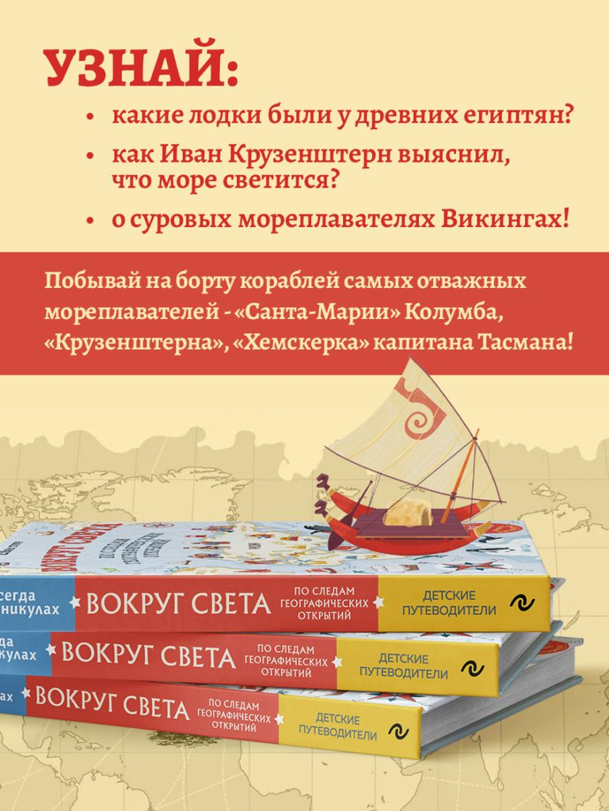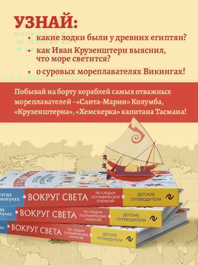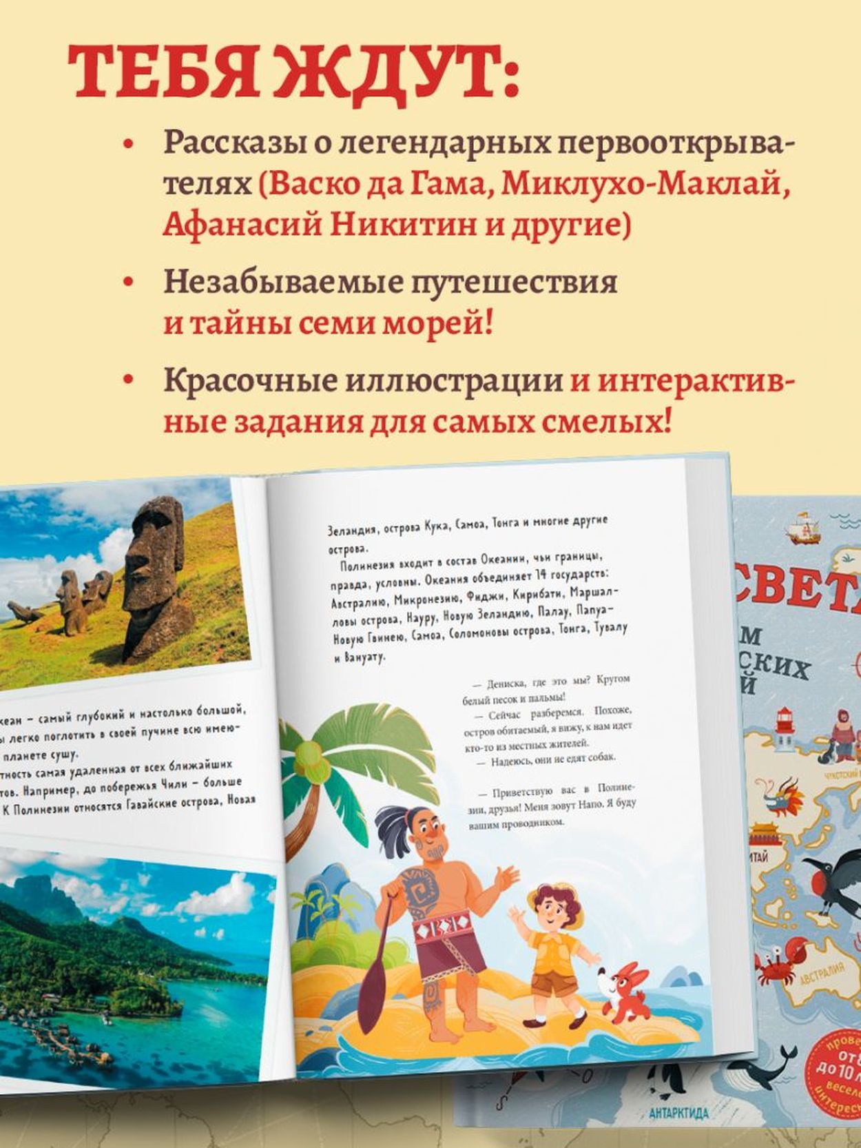 Uncover the secrets of the seven seas! You will hear stories about legendary discoverers who plied the vast expanses of the ocean, discovering new lands and expanding human knowledge. Learn about the outstanding exploits of Vasco da Gama, James Cook, Miklouho-Maclay, Afanasy Nikitin and other brave sailors whose adventures inspire generations of explorers.