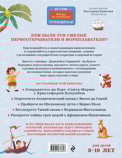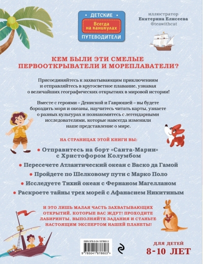 Around the World in the Footsteps of Geographical Discoveries is an incredible adventure that will take you aboard famous ships - Columbus's Santa Maria, Kruzenshtern, Captain Tasman's Heemskerk and many others. This colorful and informative book will take you into the exciting and sometimes dangerous world of seafarers who dared to sail through unknown waters. Young readers will go with the Vikings on their first voyage, discover the New World and sail around the world, which forever changed our understanding of the planet.