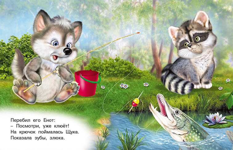 "Wolf Fisherman" is a story in verse from the series "Furry Friends" by author Irina Gurina. The paperback book contains 12 color pages with illustrations by Igor Prikhodkin. The format of the book is 14 x 18 cm, so it is easy to take it on the road or for a walk. The story is suitable for children of preschool age.
