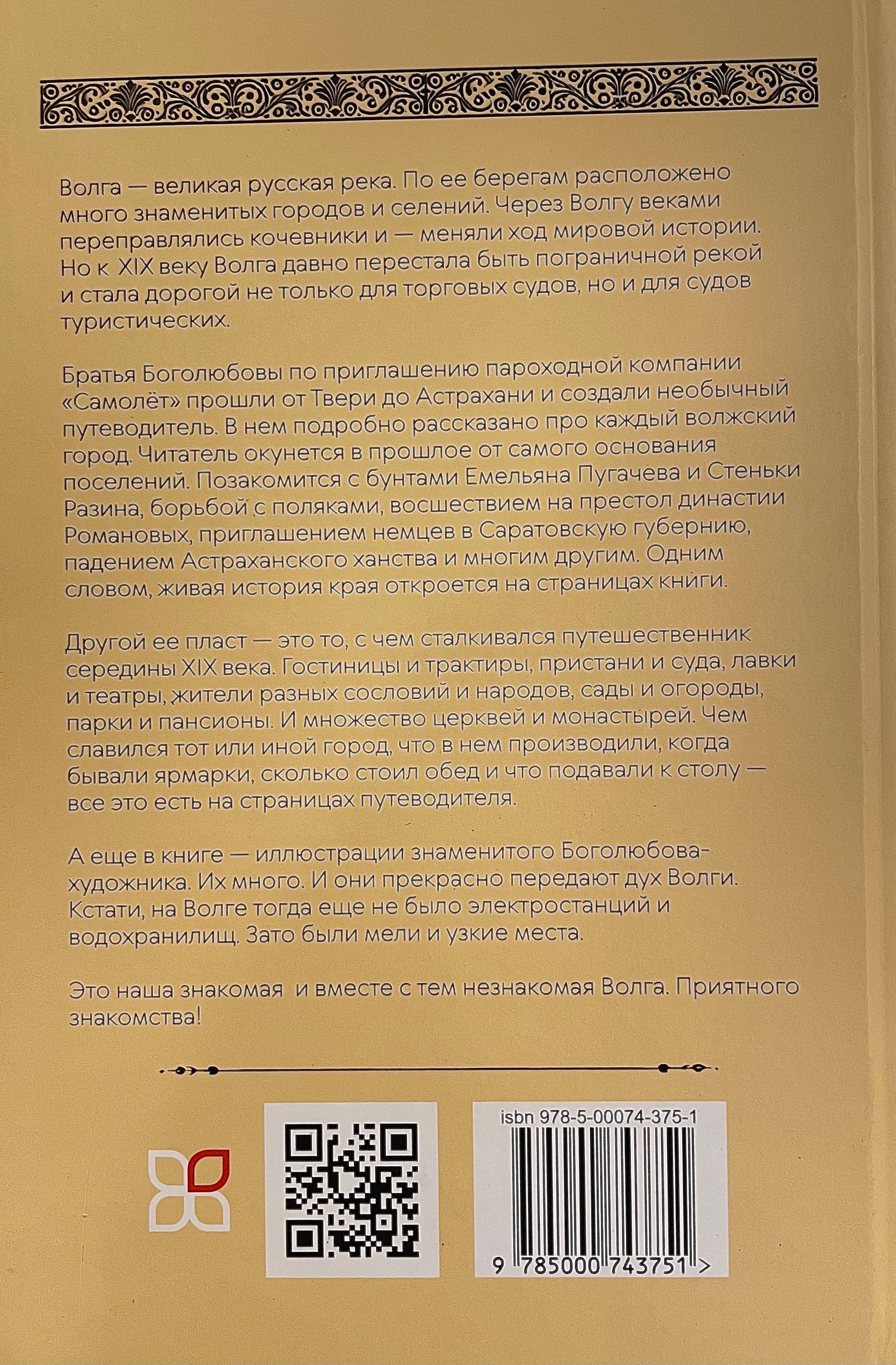 Before you is a unique historical guide to the Volga by the Bogolyubov brothers, first published in 1862. This rare work is the first detailed illustrated description of the great Russian river, cities and villages, the life of local peoples, filled with historical facts. The book is unique in that the illustrations were made by Alexey Petrovich Bogolyubov, a famous Russian artist. This is not only a valuable historical testimony, but also a real gift for lovers of Russian culture, travel and local history.
