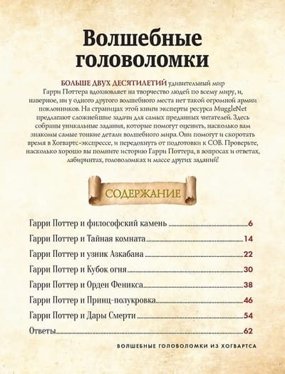 This book is more than just a collection of puzzles, but a truly magical adventure for all Harry Potter fans! Test your knowledge, solve riddles, and uncover the secrets of the famous school of magic.