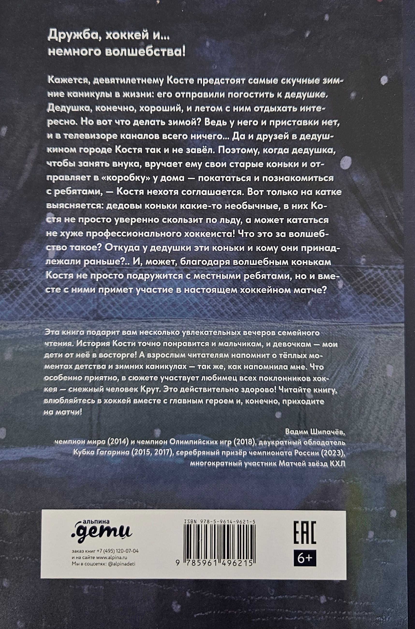 Therefore, when his grandfather, in order to keep his grandson busy, hands him his old skates and sends him to the box near the house - to skate and meet the guys - Kostya reluctantly agrees. But it turns out at the skating rink: grandfather’s skates are some kind of unusual, in them Kostya not only glides confidently on the ice, but can skate as well as a professional hockey player! What kind of magic is this? Where did grandpa get these skates and who did they belong to before?.. And maybe, thanks to the magic skates, Kostya will not only make friends with the local kids, but also take part in a real hockey match with them?