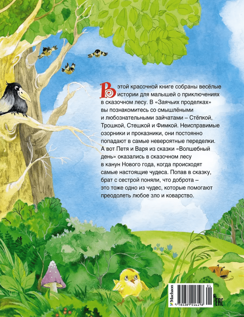 This colorful book contains funny stories for kids about adventures in the fabulous forest. In "Hare tricks" you will get acquainted with smart and curious rabbits - Stepka, Troshka, Steshka and Fimka. Incorrigible mischievous pranksters, they constantly fall into the most incredible alterations. But Petya and Varya from the fairy tale “Magic Day” turned out to be a fabulous forest on New Year’s Eve, when real miracles occur. Once in the fairy tale, the brother and sister realized that kindness is also one of the miracles that help to overcome any evil and treachery.