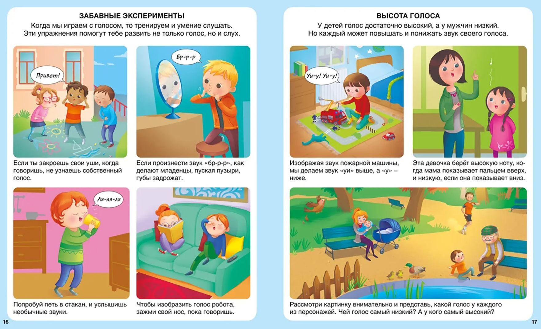 You will understand why we hear sounds and thanks to what we can speak and sing, practice controlling your voice, learn the basics of music notation, find out what musical trends are, get acquainted with different types of instruments and... you can even make your own! You'll also have fun experiments with sound and entertaining games and tasks to test your knowledge.