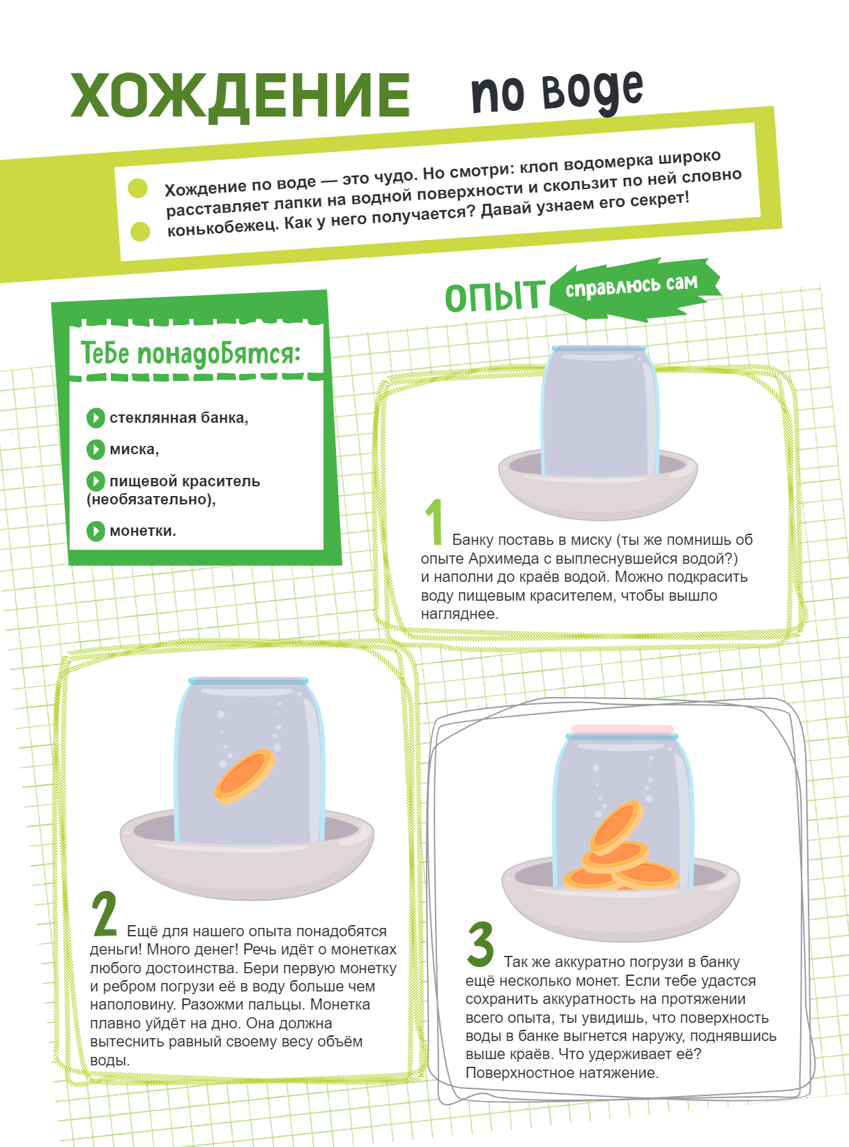 Surprise everyone. How? Put on a real show - conduct experiments that prove that nature is a truly powerful wizard. Make a glass run, cut ice with a single thread, pour light from a watering can, lift a plate with a radish, freeze soap bubbles, create a secret message with invisible ink - you can do many more miracles, and nature will help you in all this, of course.