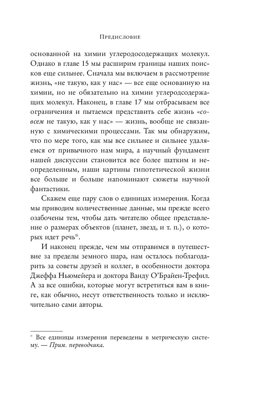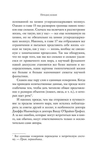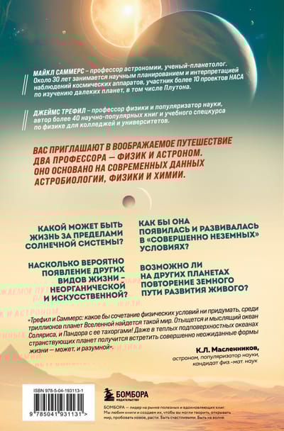Scientists Trefil and Summers, professors of physics and astronomy, invite us to take an imaginary journey, a kind of safari through distant galaxies and exoplanets, in search of the life that could conceivably exist there. Using the most up-to-date scientific evidence, they speculate about: -How and why would life appear on other planets? - How is it likely to evolve in "completely non-terrestrial" conditions - at ultra-low temperatures and ultra-high gravity? - Is it possible to repeat the terrestrial path of development of life on other planets? - How likely is the emergence of inorganic and artificial life based on elements other than carbon? At the end of each section, the authors provide humorous arguments to prove or disprove how and why a certain kind of life might be the only possible life in the entire universe.
